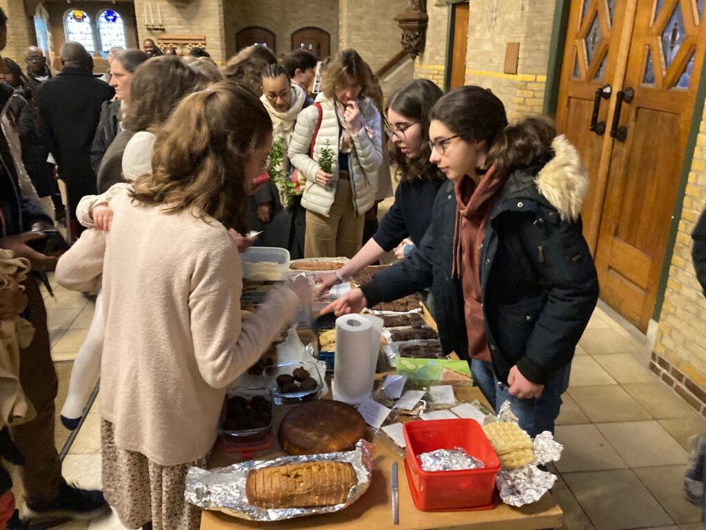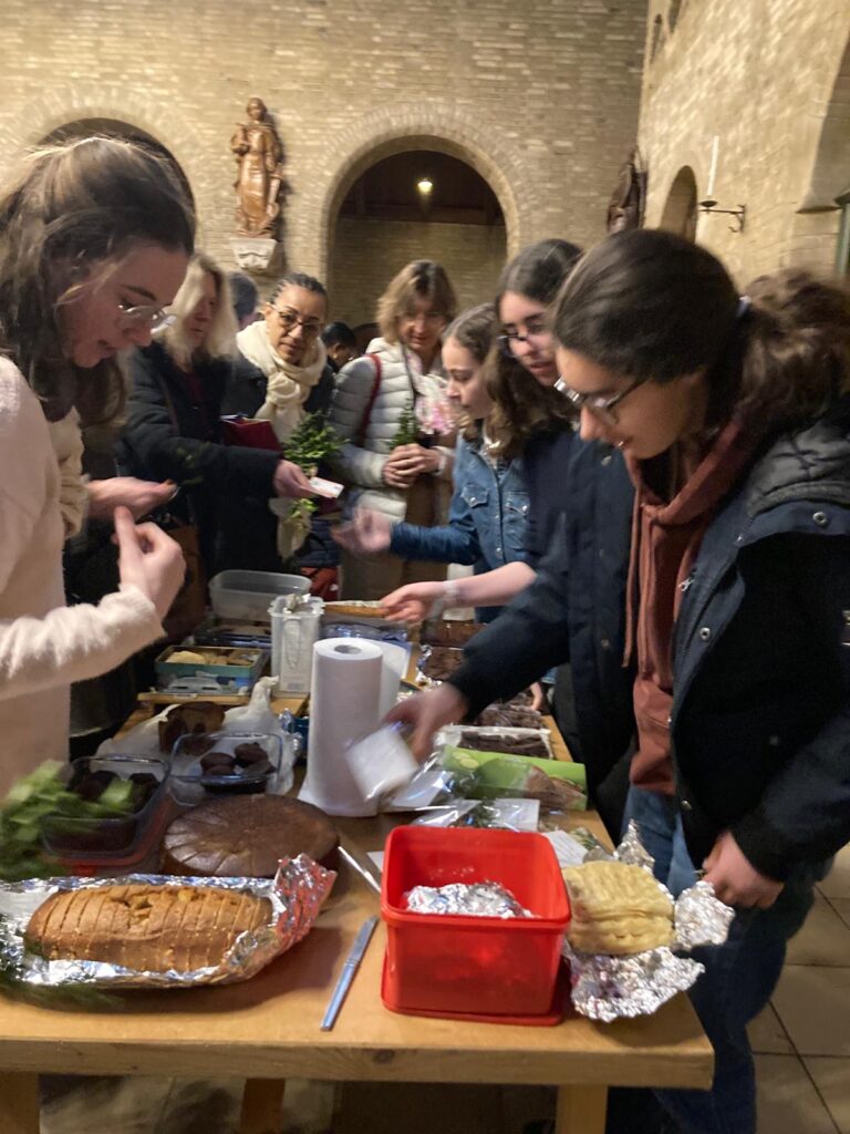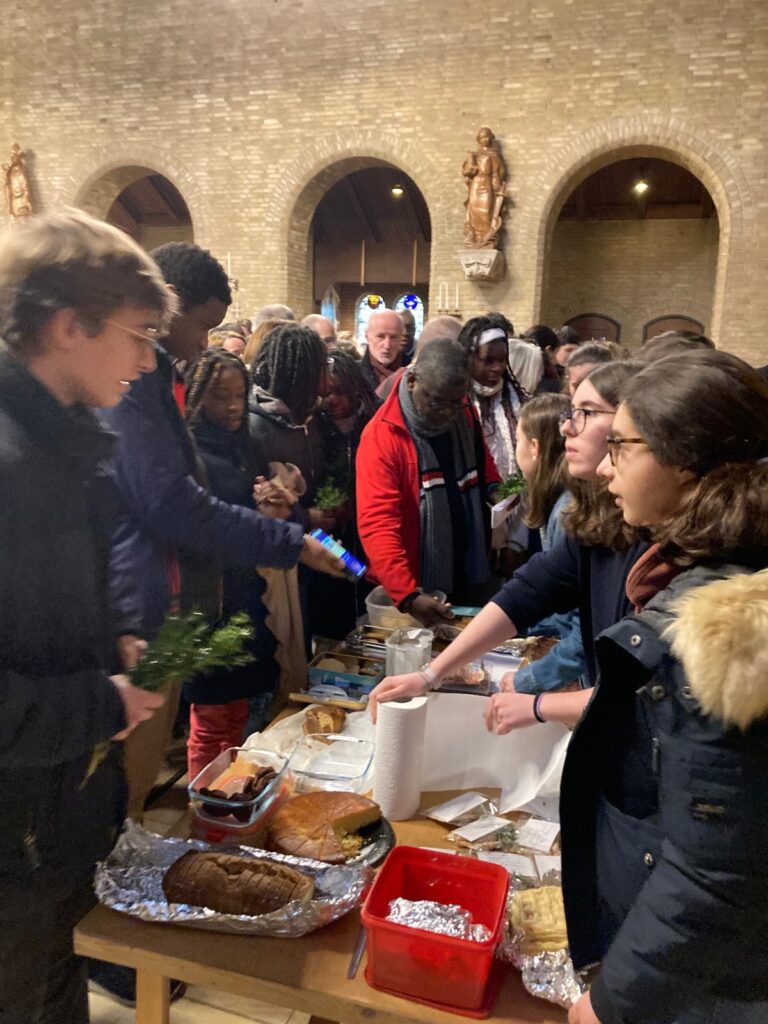 Après la messe, nous allons ensemble chez le couple qui nous accueille jusque vers 22h. Chacun amène de quoi partager un dîner.