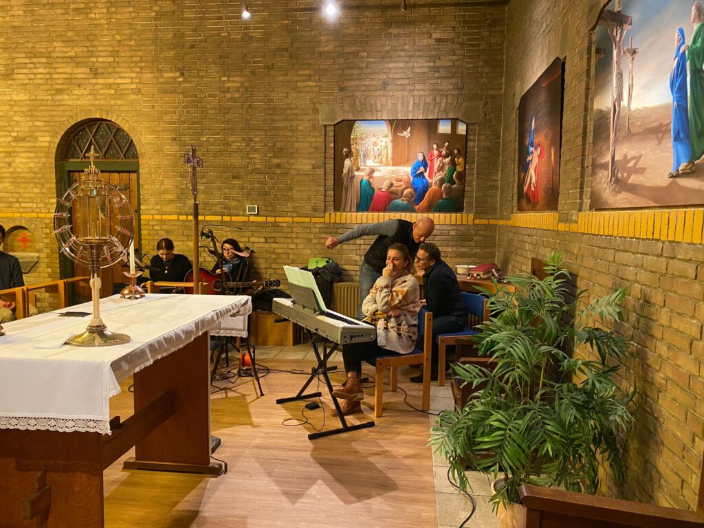 Nous, les jeunes de l’aumônerie de la 4e à la Terminale, nous retrouvons une soirée par mois chez nos animateurs, après une messe “entre nous”, Chapelle Notre-Dame de Lourdes (Lourdes Kapel), Berkenbosch Blokstraat 9A, 2586 HD Den Haag (Scheveningen) le samedi à 18h.