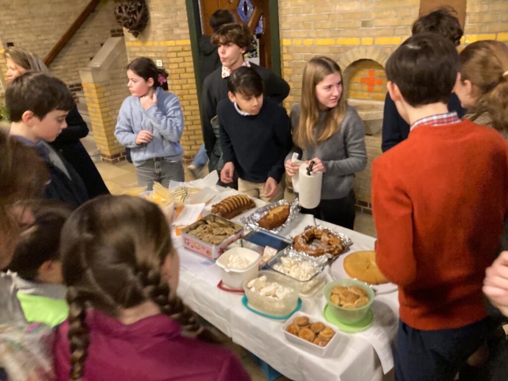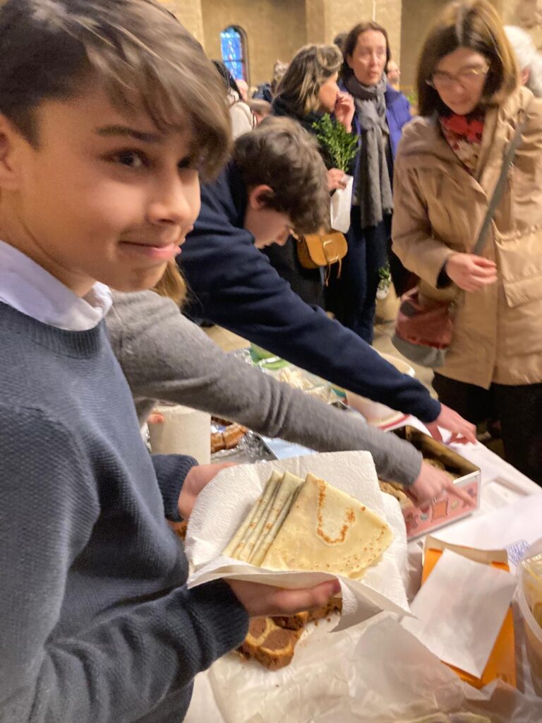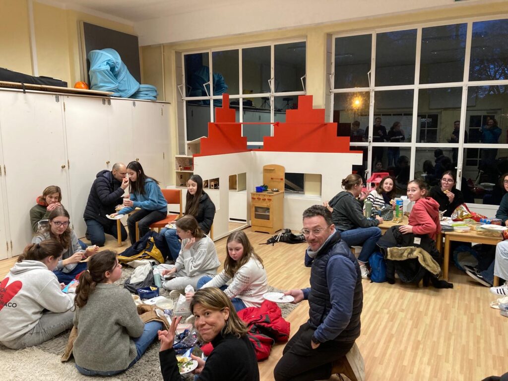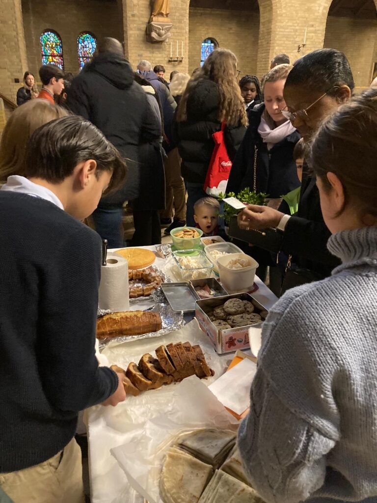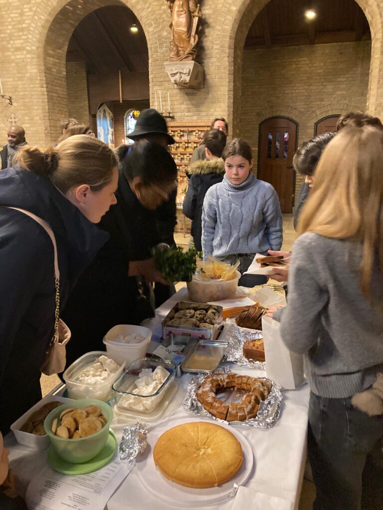 Après la messe, nous allons ensemble chez le couple qui nous accueille jusque vers 22h. Chacun amène de quoi partager un dîner.