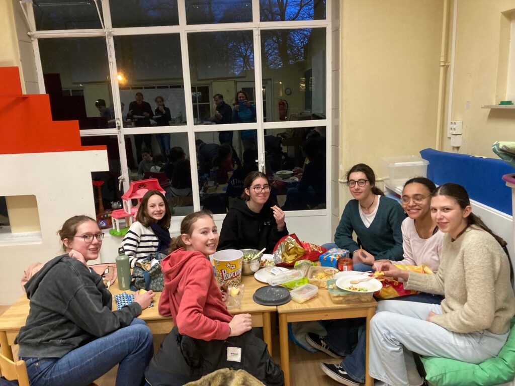 Puis nous nous installons pour une soirée de discussion/réflexion sur un thème choisi par le groupe (par exemple: le bonheur, l’argent, les relations filles-garçons, l’actualité, l’image de soi, la prière)